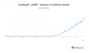 Entwicklung des Suchinteresses für den Begriff „ASMR“ (Google Interest) im zeitlichen Verlauf.
