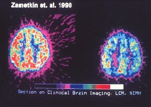 Mittels PET wurde ein um 8,1 % verminderte Umsatz von Glucose festgestellt, während eine SPECT-Untersuchung eine geringe Durchblutung des Frontallappens und des Striatums anzeigte. Die genannten Ergebnisse gehen auf eine Studie von Zametkin et al. aus dem Jahr 1990 zurück. Die spezifischen Befunde konnten in nachfolgenden Studien jedoch nur teilweise reproduziert werden.[1][2]